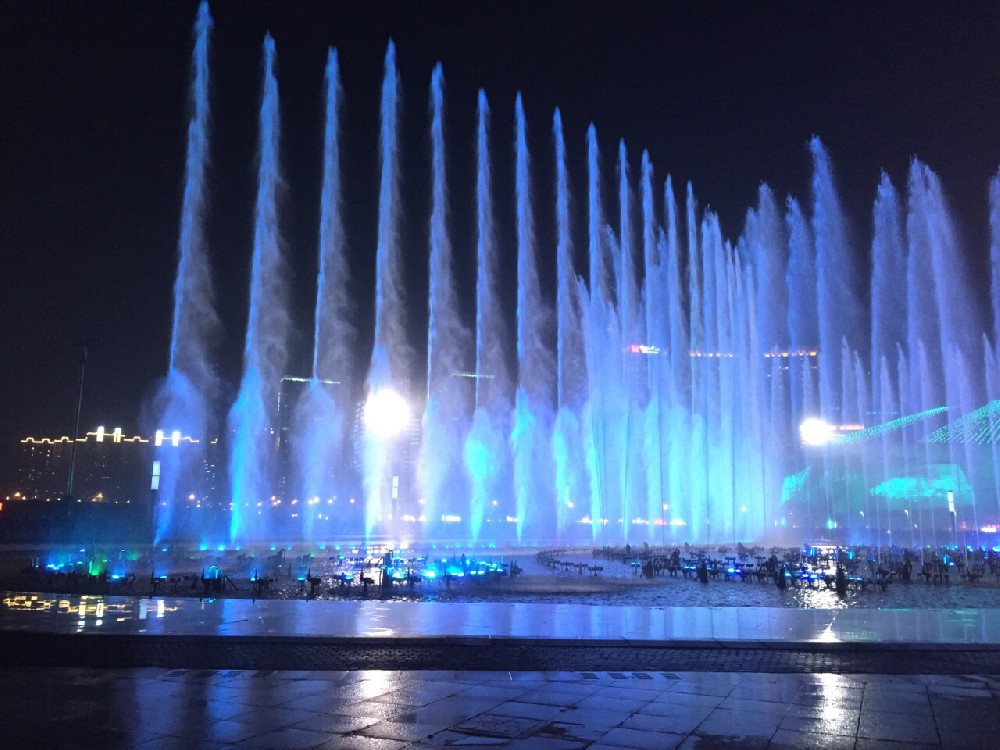 西湖音樂噴泉長約126米,弧形部分寬約2米,整個音樂噴泉主要有七···